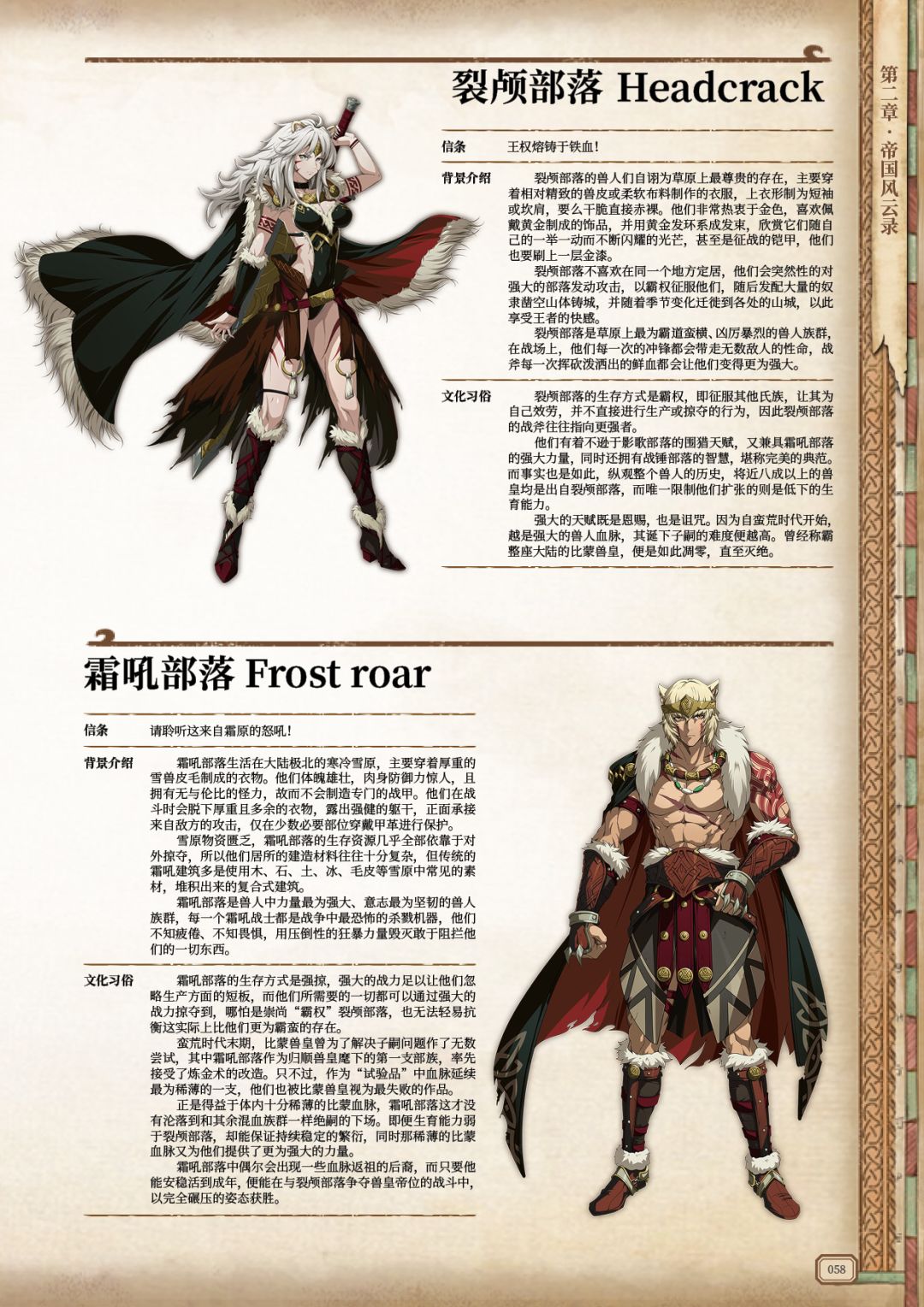 ①兽人族群的分支——影歌部落、战锤部落、裂颅部落、霜吼部落。
