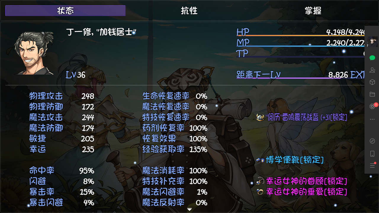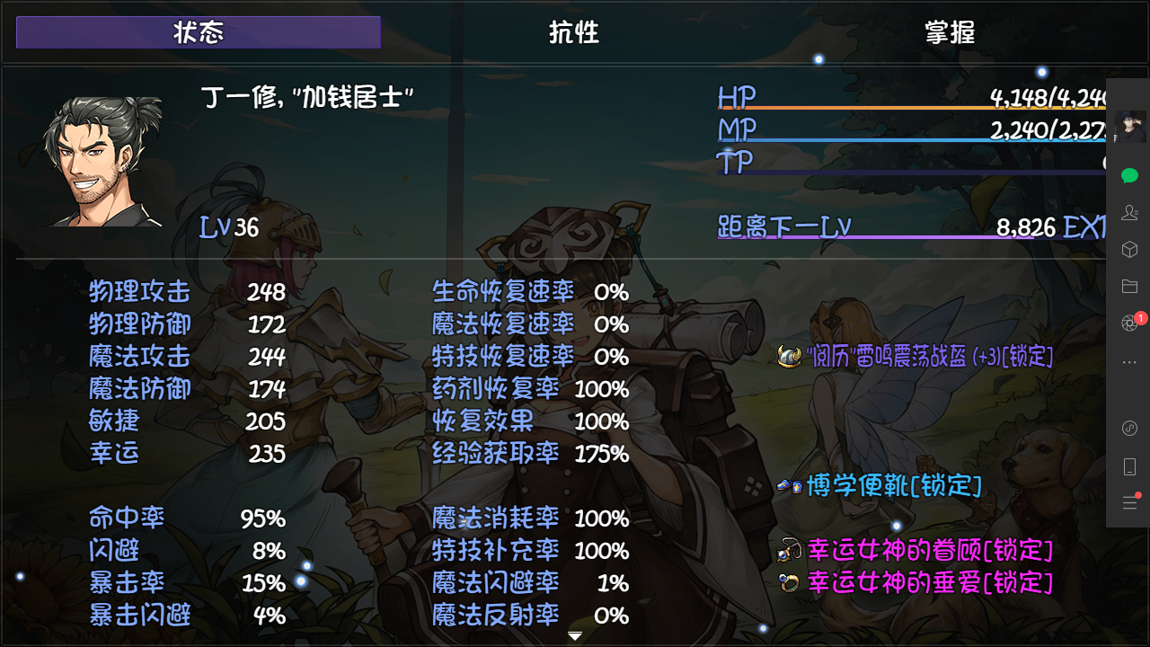 丁一修吃到了博学者40%加上阅历头和博学便鞋的35%
