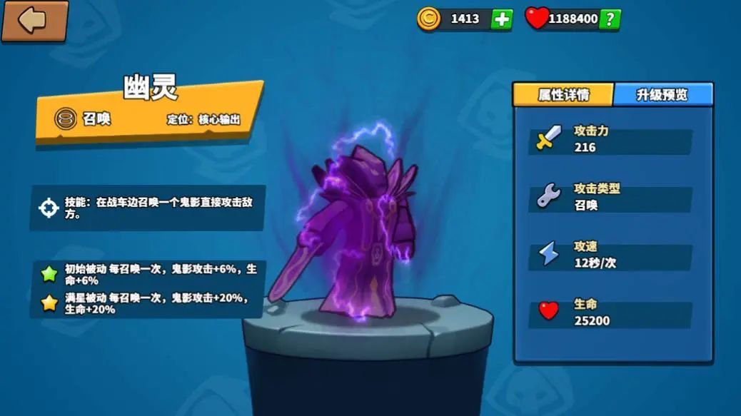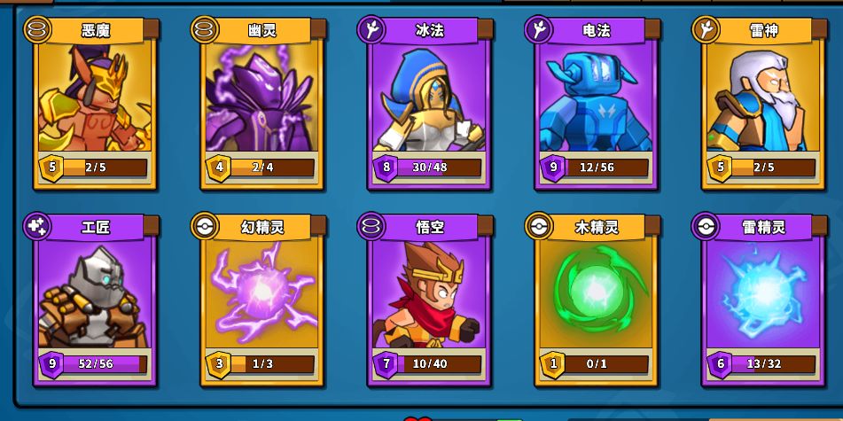 3、此阵容前期建议优先刷钱,三法三召的优势就在于刷钱比对面快,输出点为雷神+幽灵,优先升级输出。如果对面被动为烟斗则优先升级恶魔+幽灵,幽灵满级之后对面基本就GG了。由于此阵容没有治疗配合,所以需要带木精灵加血。