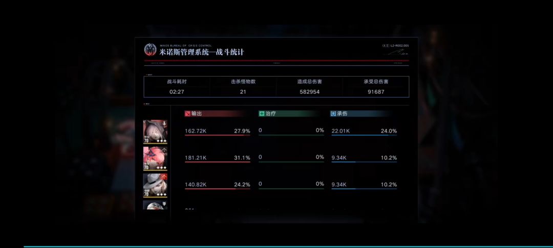 三角色均70级三阶开专武。夏音满锁技能等级11,兰利一锁技能等级19,nox一锁技能等级7,罪印全部平民紫。全程除兰利破核吃一次充能其他都给奶妈。