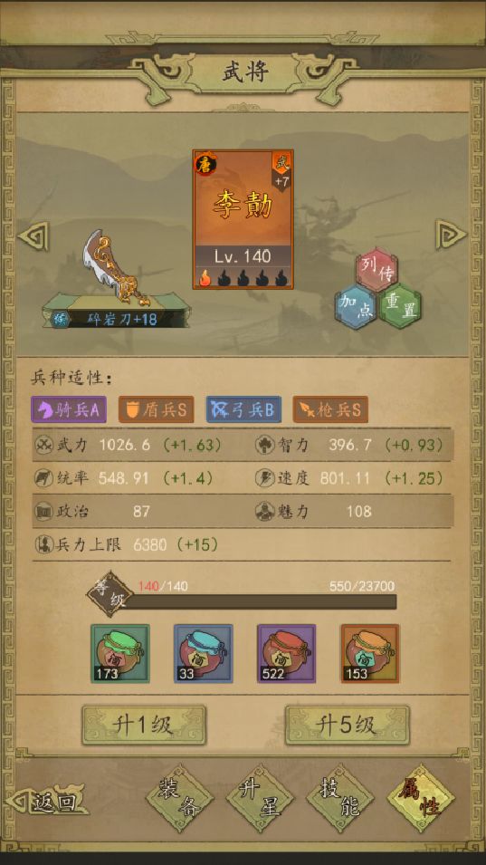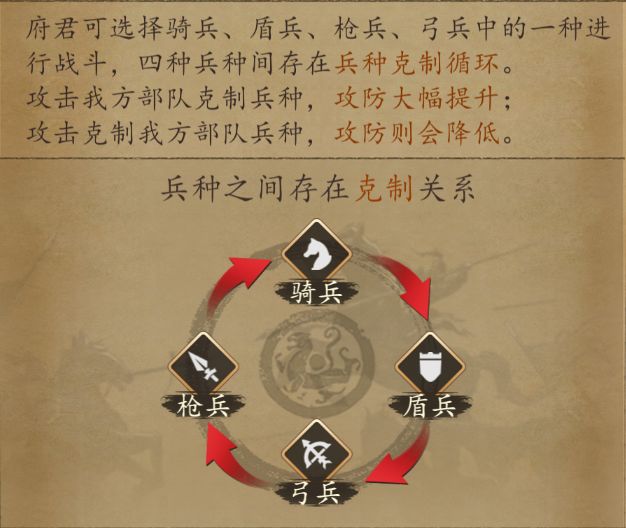 5.考虑兵种克制,根据当前大环境兵种优先选择克制兵种进行搭配(比如区里80%队伍全是三李,那你可以考虑优先配骑兵队),兵种克制为盾克弓,弓克枪,枪克骑,骑克盾,兵种克制可以降低对面20%攻防(理解为20%属性降低)。