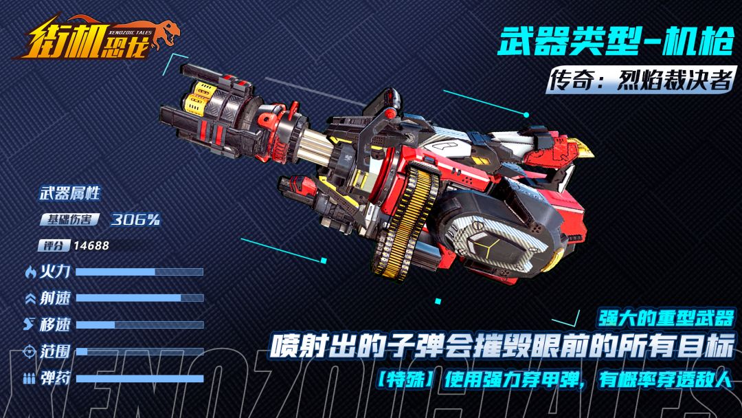 Hi~各位冒险家,今天娜妹要给大家介绍的是《街机恐龙》机枪武器中的第三款武器,这款走狂拽酷炫路线的最高品级武器,究竟有什么特别之处呢?