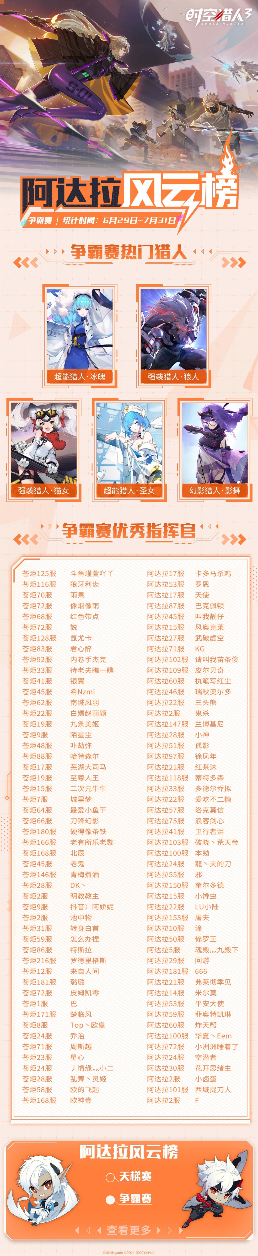 【阿达拉风云榜】 热门猎人与优秀指挥官揭晓!