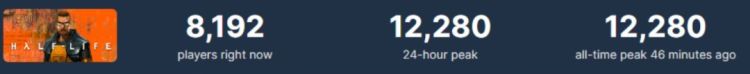 北京时间8月14日23时左右,经典FPS游戏《半衰期》(Half-Life)的Steam在线人数突破了两年前限时免费游玩期间的历史记录,达到了12280人同时在线。
