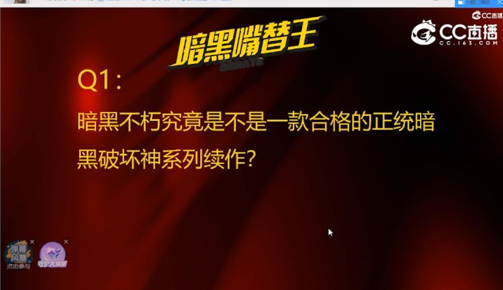 昨晚在CC直播暗黑专区,轰轰烈烈搞了一场暗黑版华山论剑,大家熟悉暗黑硬核主播琉璃子、大帝、九幽、李由多等人参加这次活动,其中琉璃子和九幽代表正方,大帝和李由多代表反方,今天就给大家做个懒人包,回顾下昨晚这些人到底说了什么!重点就关键精华内容!