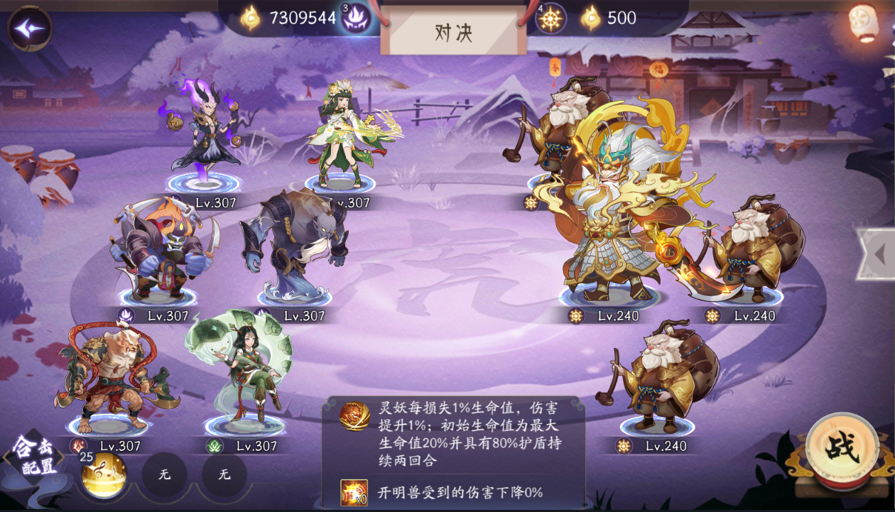 2、玩家在与开明兽的战斗中获得了全九州的鼎力支持,出战的所有灵妖等级均获得修正。