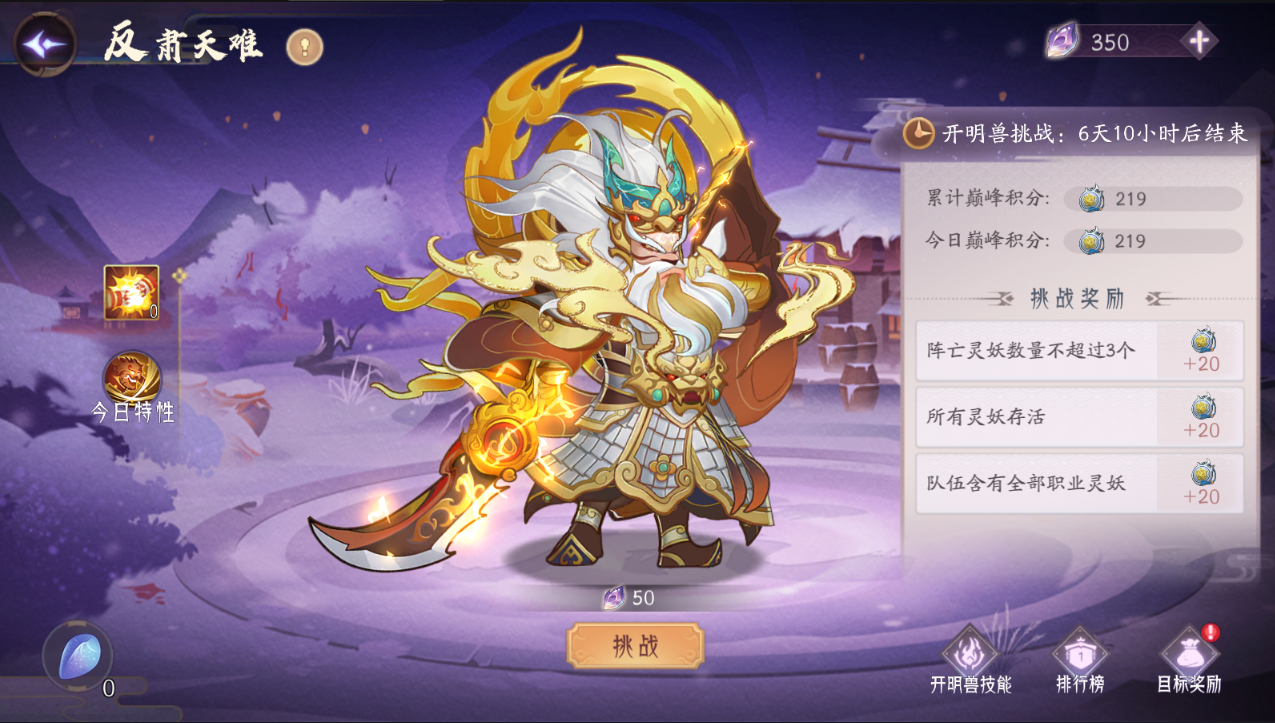 1、玩家每日可多次挑战开明兽,前三次免费。后续挑战开明兽会花费固定数量的妖魄。