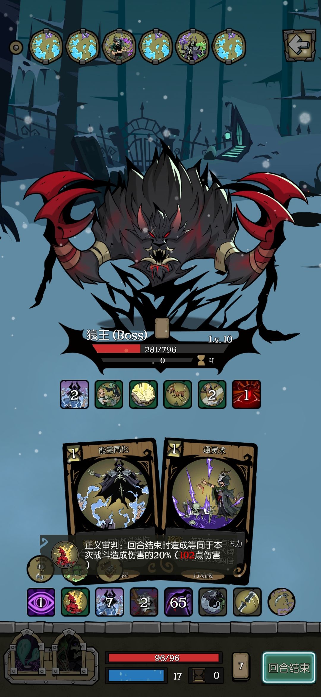 最后本来想偷狼王的buff牌随便玩的,没想到拿到黑暗曙光,直接两回合结束战斗了