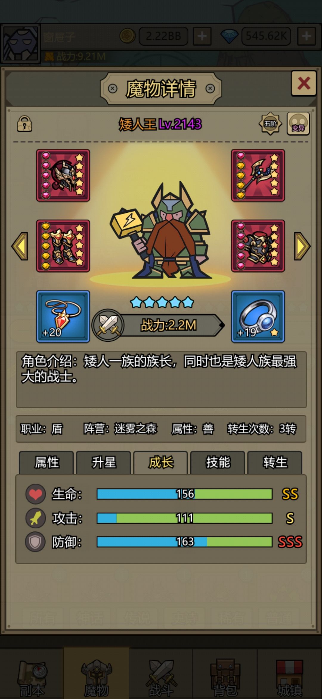 优秀的紫盾,几乎没有消耗的升星,培养成本为零,升成高星后比5星的矮人王还能顶