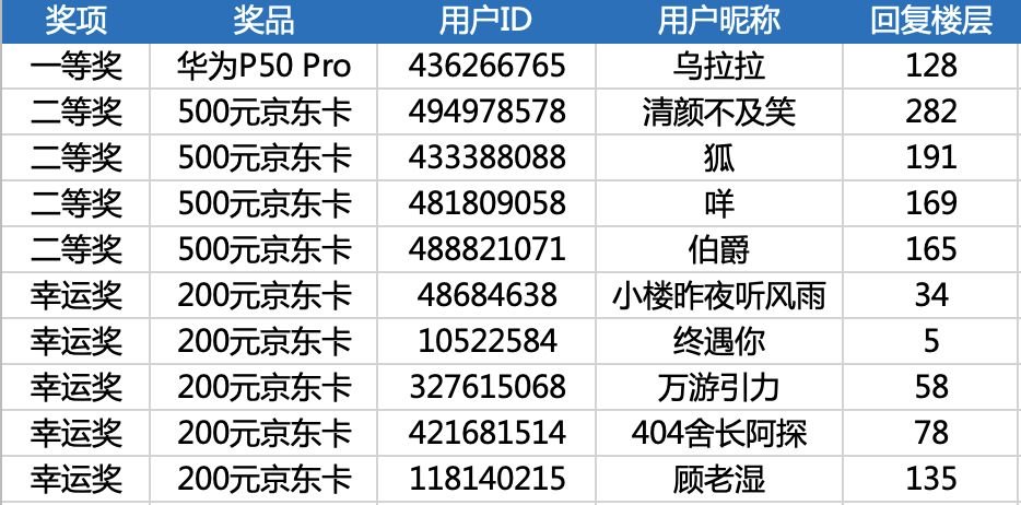 本帖已开奖!恭喜以下玩家获得手机或京东卡,请务必在8月31日前进入 收货信息 填写收件人(真实姓名)、收货地址和手机号,我们会尽快寄出奖品,过期未填写或未正确填写,则视作放弃奖品。