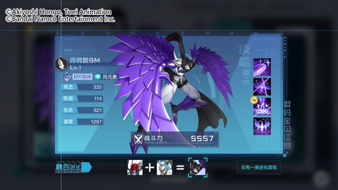 各位队长好呀~歌子又和大家见面啦!游戏内的进化培育功能即将限时开启渡鸦兽BM的融合进化,大家消耗数码宝贝经验和同调因子,可将渡鸦兽与斩天使兽融合进化为超究极体渡鸦兽BM。