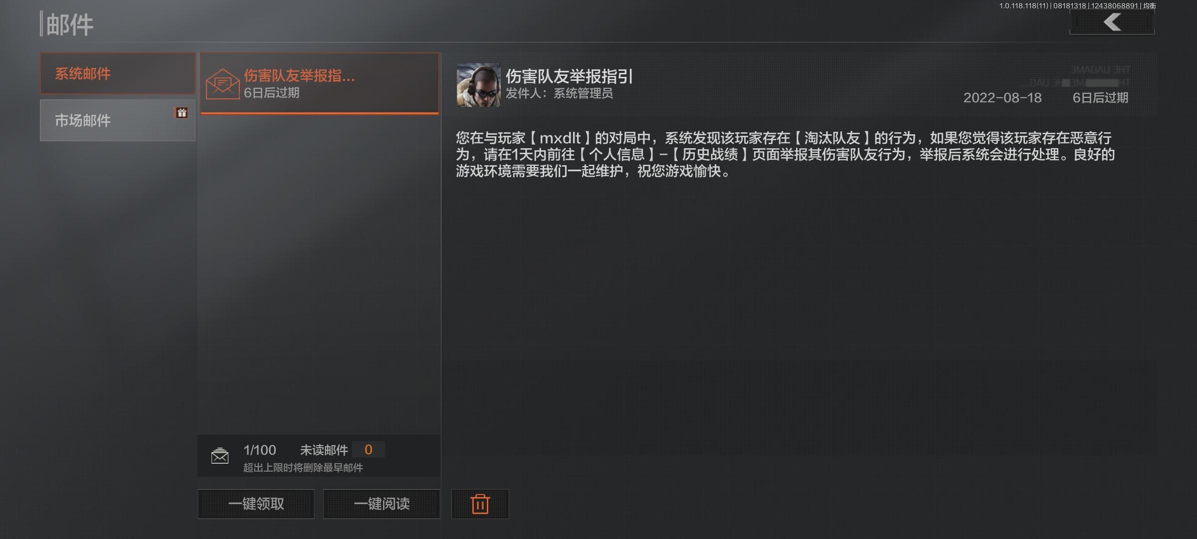 结算界面已经举报一次了(那次是举报淘汰者,就是这个队友)然后出来又发邮件要我举报,这次我举报了这个人,但是选的是队友的选项。。。同一个人。举报一次不就完事了吗?
