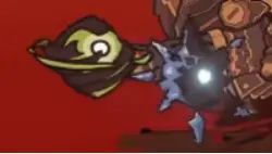 游戏中还出现了一个特殊的个体,暂且称之为“组合体”,它由戈伦的残骸组合而成(猜测至少两只安度西亚),在头部周围,肢体末梢出现了黑色的液体,且头部也出现了红眼,这个组合体可能因为意外变成了类似影兽的存在,参考pv中“黑蛇与骸骨”的对比,可能在某种状况下影兽具有依附的作用。