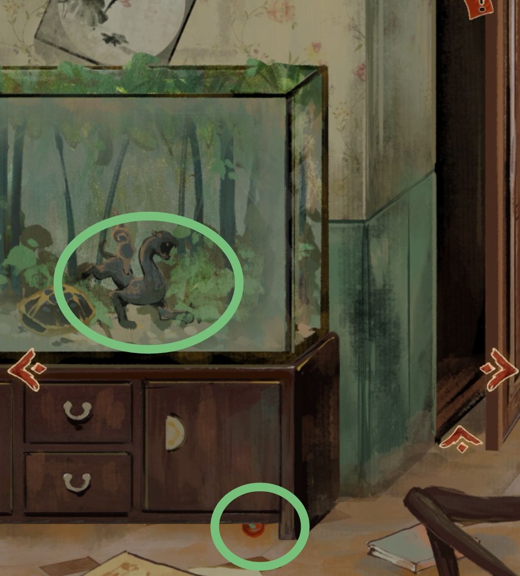 将从水池中获取的龟壳摇一摇,得到柜子的钥匙,从柜子中拿取物品