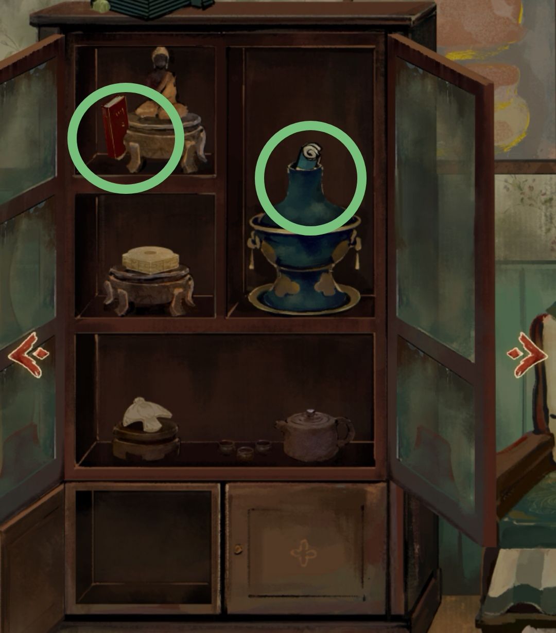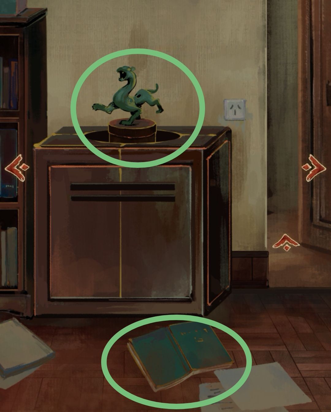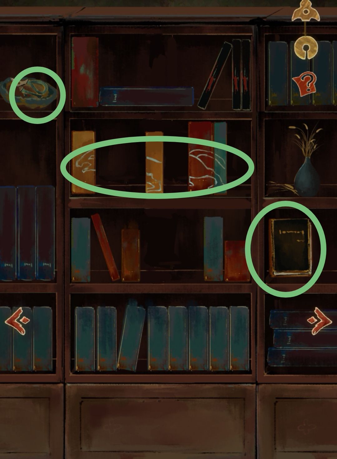 将总共获取了四本书,按书上的图案分别放入书柜上(截图慢了,只截到了一部分)