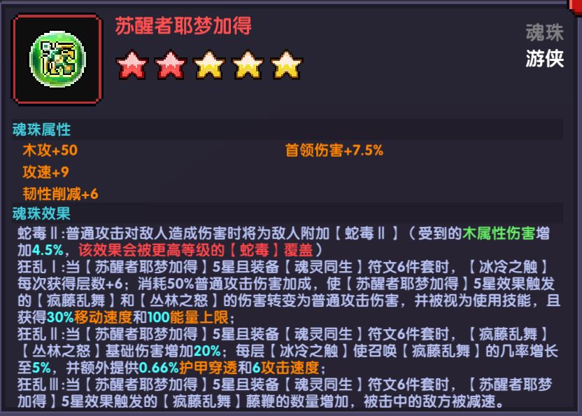 由于技能等级提升会提高丛林之魂的等级,所以技能等级收益不错