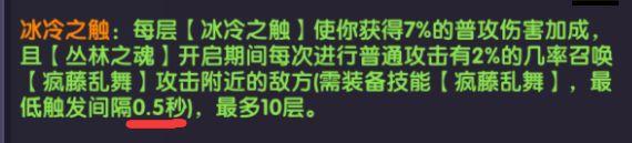 假设你的攻速为3,那么你攻击的间隔就是0-0.333-0.666-0.999,而触发间隔则是0-0.5秒,你打出第二下平a的时候是在0.333秒,还在内置触发间隔中,所以无法触发疯藤,而需要到第三下也就是0.666秒的时候才能触发疯藤,实际间隔就变成了0.666,相比于没有额外间隔直接触发疯藤效果比起来弱了33.3%伤害,所以我们需要达到的是4攻速,给我们1.2额外攻速就是为了避免我们压攻速到2-