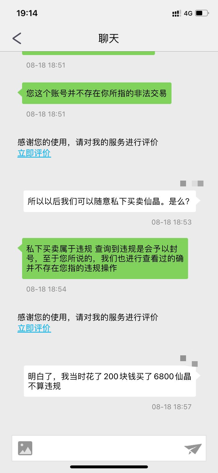 之前官方说鼓励搬砖,然后搬砖的那些人号就没了,官方的解释是不能私下买卖道具,游戏货币。今天我用买卖晶的记录举报自己的号,竟然都举报不成功,说是经检测没有违规。