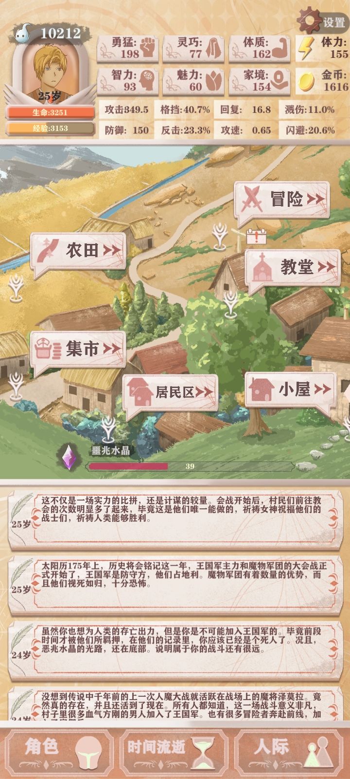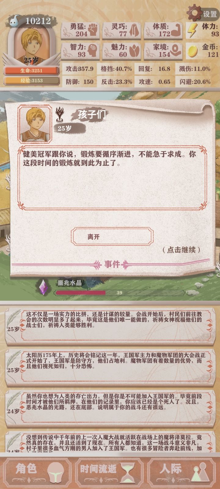 在7岁时第一次有广告体力的时候这时候要进行一次大读书。争取直接读完冒险者故事拿到10智力,在这个时候读书是15体力,但成功率却是百分之百,要比10体力但成功率30左右的成年期强不知道多少了,同理前期溢出的体力全部喂给读书养智力,成年换成院子养属性。