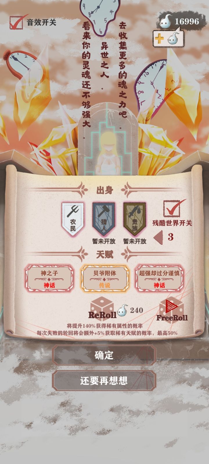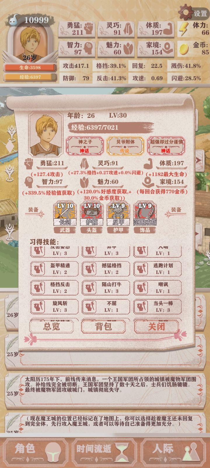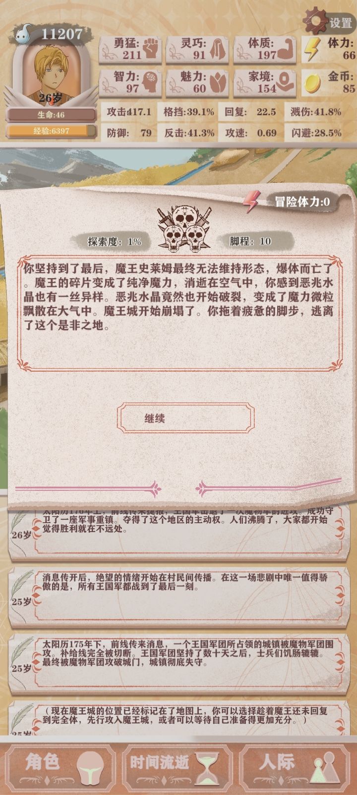 最后以这个数据打魔王了,我装备和属性成长没拿满,但我觉得我可以上了最后掉3次死里逃生,,还有一次,较为极限过了魔王,看来残酷4和5我得roll好天赋了和极限发育了。