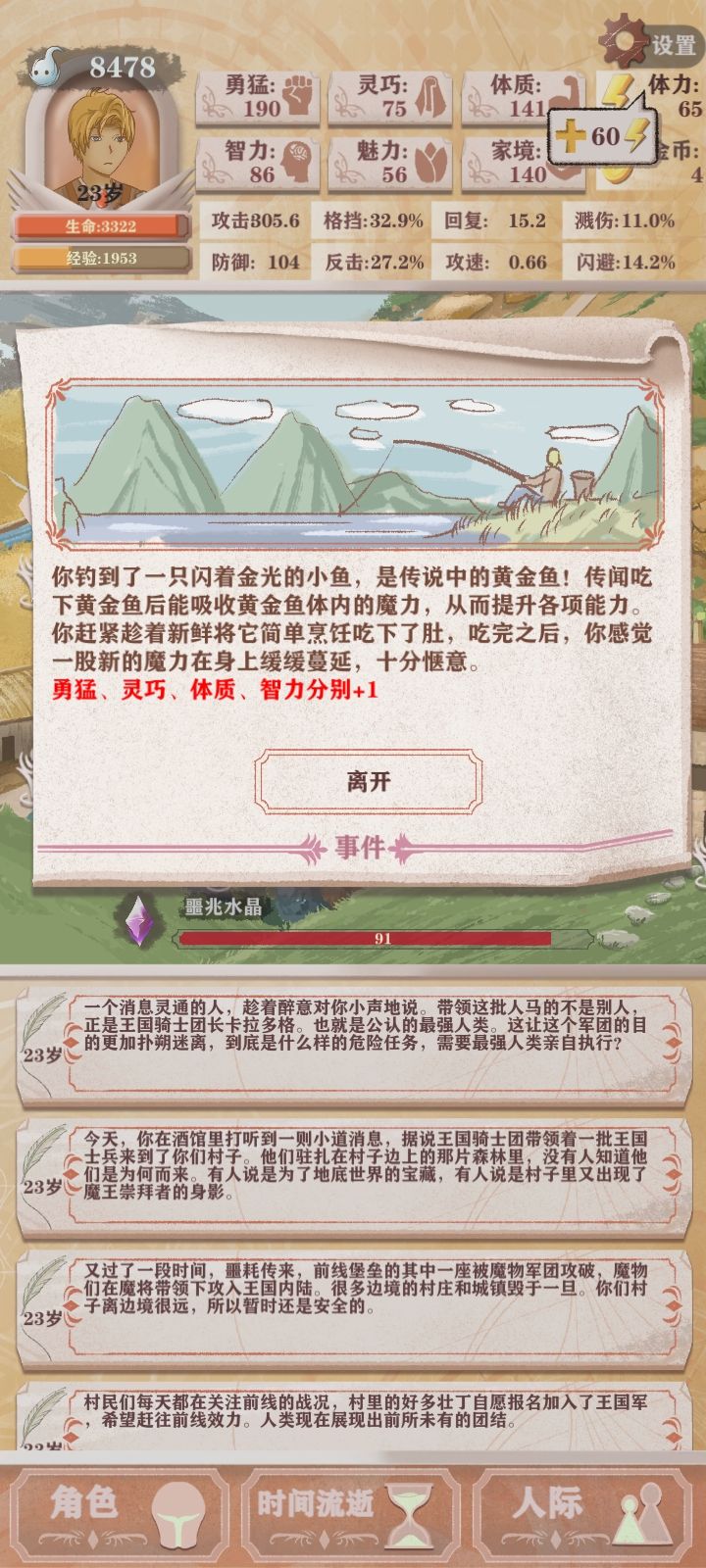 这就是贝爷的第一种用法 节约体力 在前期幼年时便可以每回合节约30体力 而有个橙色天赋为加10体力上限 这已经被贝爷给暴到哪里去了,节约下来的体力用在哪里呢,我的回答是钓鱼,买个鱼竿,每回合都去钓鱼,我手感好的时候可以连钓三次传说区域 在初始没有任何遗物加成情况下 。这又是一笔经济和成长来源 所谓细水长流 钓鱼的收益是很客观的。