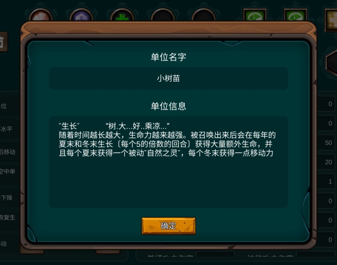 5.ˇ生长ˇ词条。魔法单位的每回合魔法消耗就相当于是士兵的维护费用,但是吧,繁星的地图如果不是正在开科技,维护费本来就很低,精灵魔法的性价比就不高了。我想保留魔法消耗的被动,于是设计了所有魔法单位被动:生长,每个周期结束时魔法单位都会获得额外增益,这些增益提供的效果巨大,是使用魔法单位时必须考虑的因素。比如刚召唤出来的魔法单位:小树苗,比较脆弱并且不能移动,但是它生长的飞快,在每个冬天结束时都会变的跑的更快。