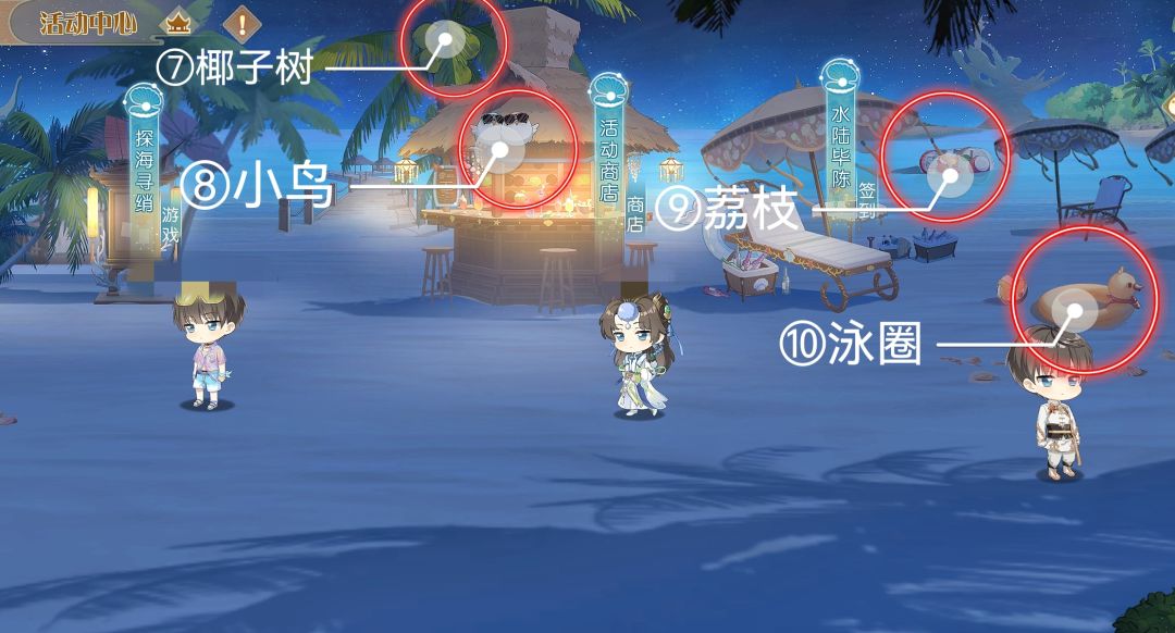 追更的少主们,最后一天的在p4,活动商店后面的椰子树