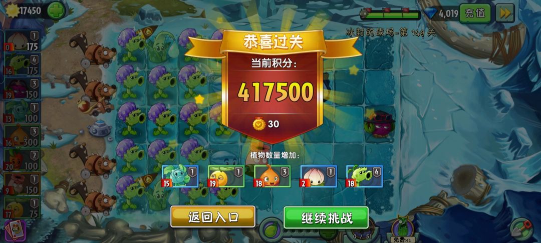 冰河无尽在多数无尽玩家眼里也算简单无尽之一了。我这里通关比较极限,能量花和神器都零了,前面的关卡摆阵不对导致补给有点崩盘,因为原豌是四阶,控制不稳定,即使是三排+冰瓜到了120+以后每关收尾最后一波二四