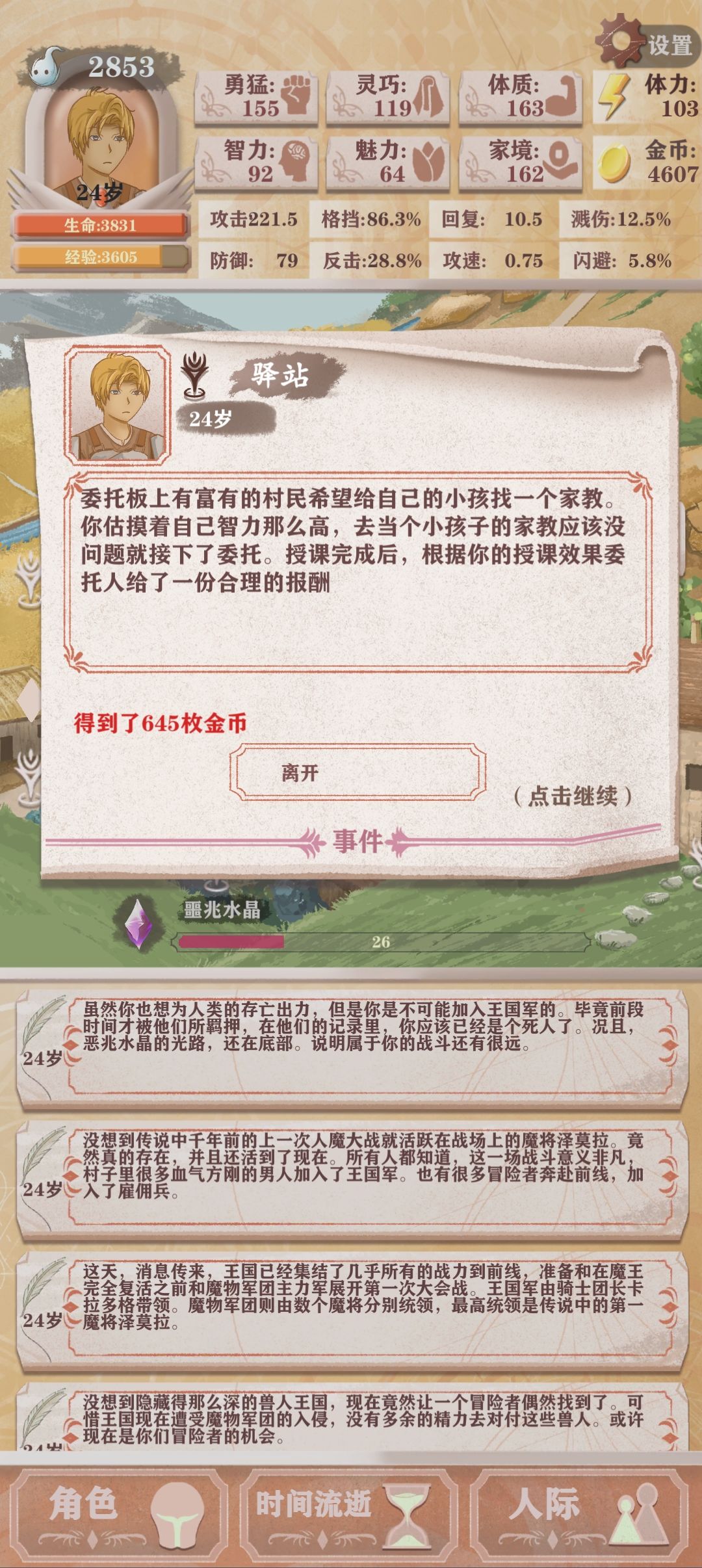 优先钓鱼 打工 属性全靠买。
