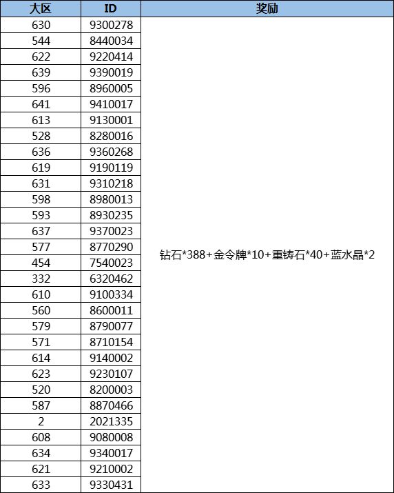 (钻石*388+金令牌*10+重铸石*30+蓝水晶*2)*30份。