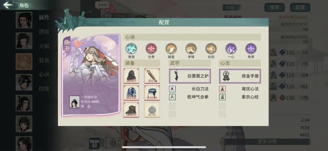 这边配了两套阵容,速推和三保一,搭配的侠客有03糖丸,00曲玉,01纳兰,00师姐,00薛涛,23太极拳王维,还有一些其他替补