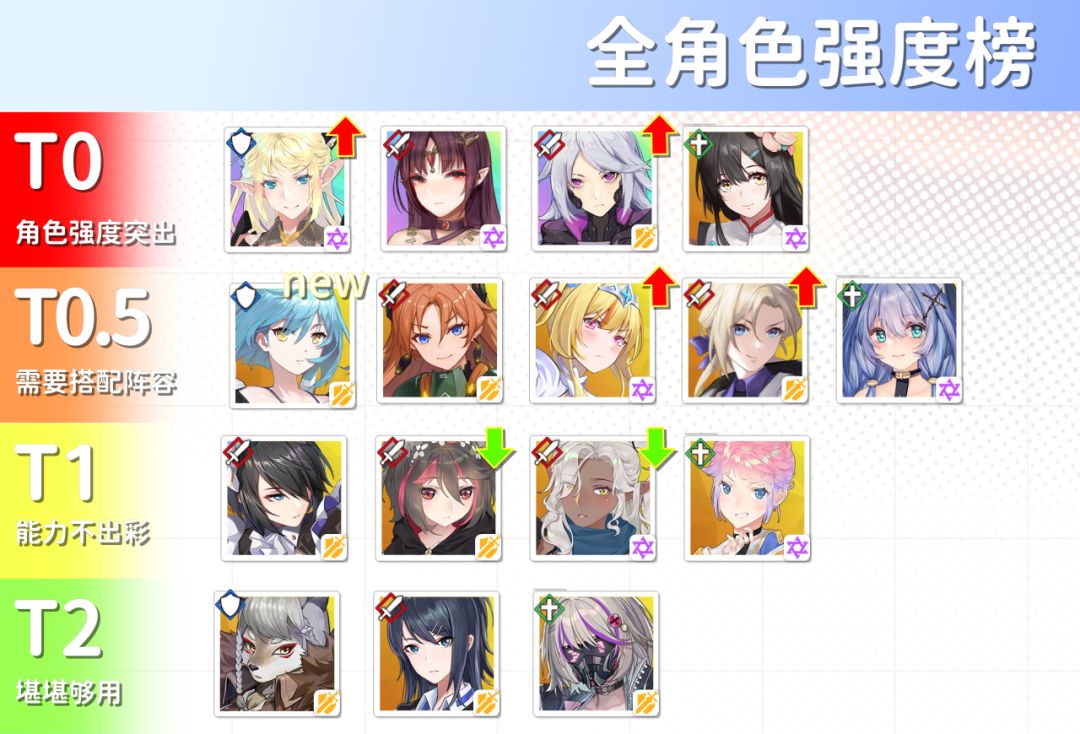 主要讲一下今天新拿到的角色和体验下来排名发生变动的角色吧。