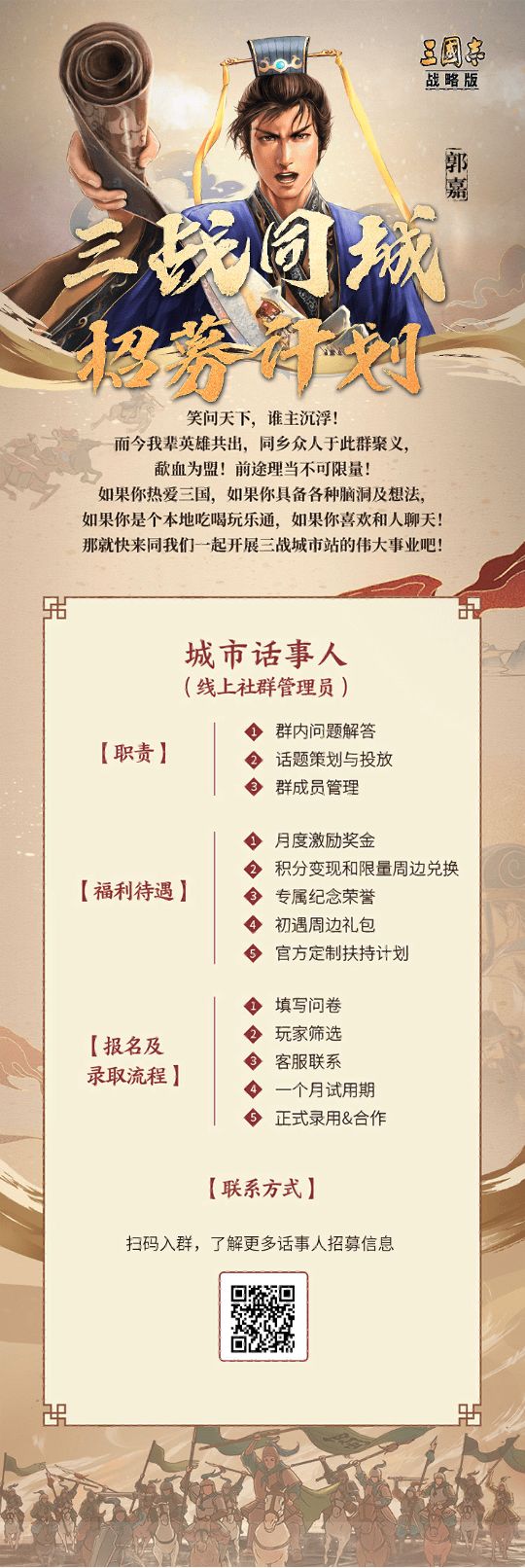 【三战同城群招募计划】报名成为你所在城市的话事人!