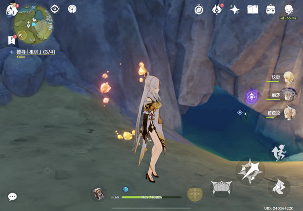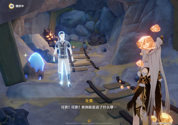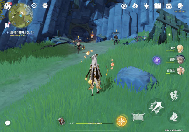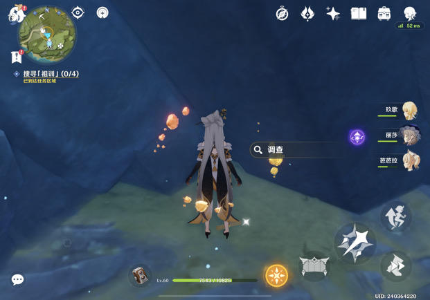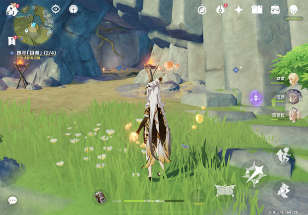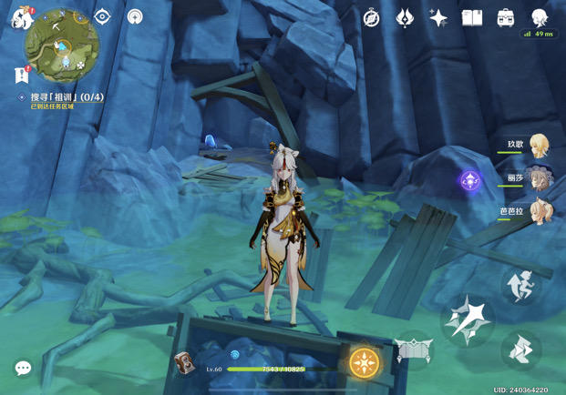第一个:在中心蓝色标志往上走,湖下面。走进去,触发标志,探索。出来第一个npc元成。(后面三个也是这样,只是npc 不一样)