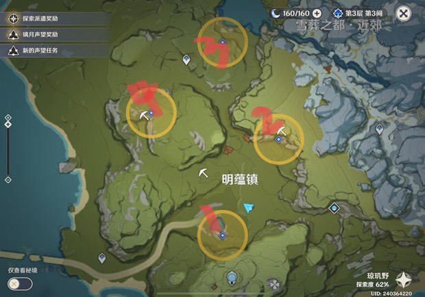 地图中四个标志位置,每一个位置对应一个矿洞。