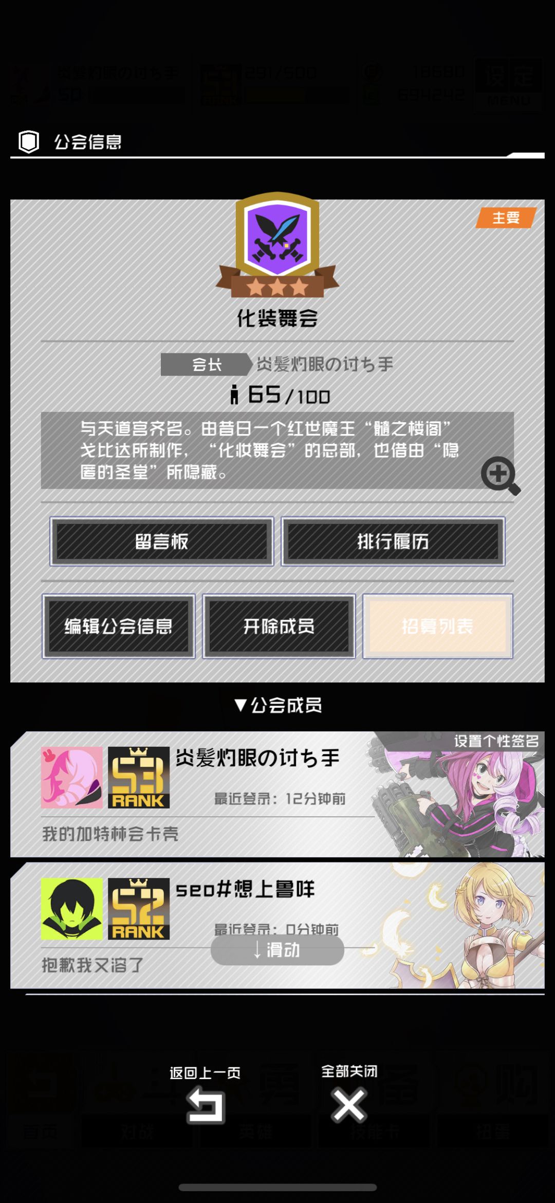 平时就打打康混混任务什么的,如果之后公会人多了,可能会试着开一下工会群方便大家聊天摸鱼,目前门槛设定为s1以上哦