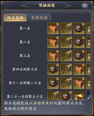 接下来就是各位少侠喜闻乐见的奖励环节了,闲人日记的奖励共分为两种,分别是答题奖励和排名奖励。答题奖励活动期间最多可以领取五次。排名奖励则会在活动结束后通过邮件发送给大家。