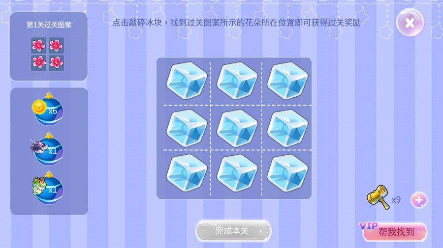 如果遇到了敲冰块任务,需要我们找出图中左上方的花样图案;