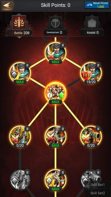 ⑤技能点分配:- 领主技能战斗部分使用您的技能点数以获得更好的属性,同时要确保根据您的主力兵种进行领主技能点的消耗。