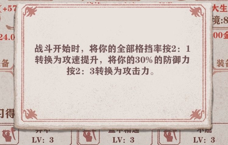 其他的技能要注意不能攻速和提高对方攻速,不要给对手动的机会,例如反击姿态,双持。 还有因为格挡换成攻速了,格挡的技能也没用例如格挡反击,撼猛格挡。