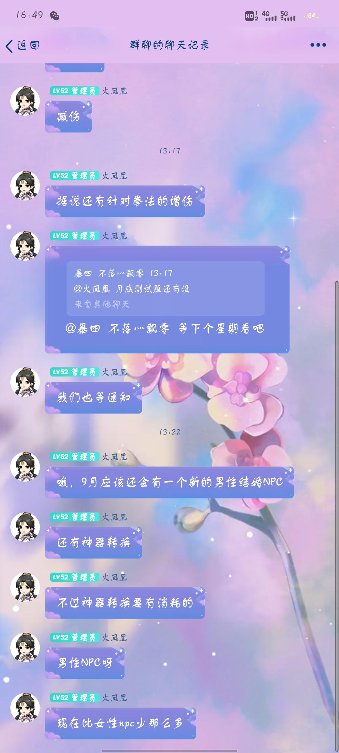 来自测试服和官方群的消息