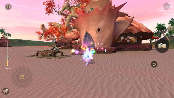 坠龙谷地图不仅是练级PK的好去处,也是打卡的新景点。战斗累了,就到溪水湾出生点休息一下吧。细腻的白沙上搭建着海螺形状的小屋,以海星贝壳作为装饰,粉色晚霞映满天空与海面,琴声泠泠里,与村民交谈放松,让心灵获得一刻休憩。