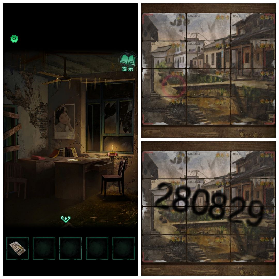 进入员工室,点击右侧办公桌上发亮的位置,放上公交卡,交换卡片位置完成拼图(可以先调整带红色直角的卡片位置确定四个角的图案,然后再调整其他卡片),完成拼图后卡片上出现线索“280829”。