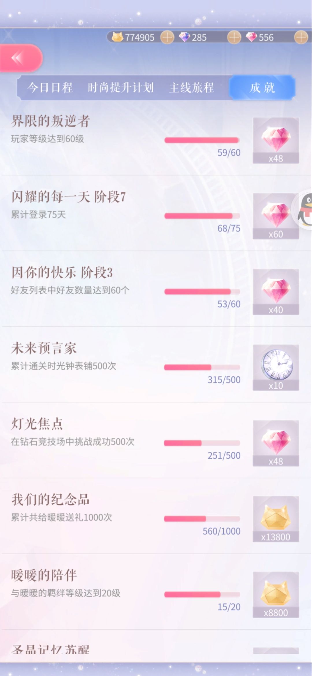 9.成就奖励,有的成就达成之后是有钻石奖励的,看着来肝比较有目的性。这样攒钻有了明确目标会更好达成。