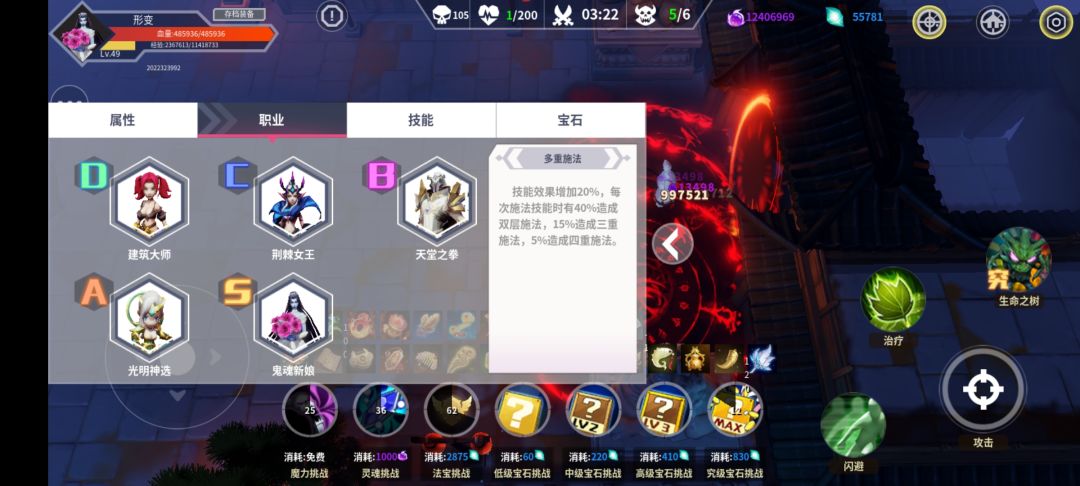职业看图,d职业不固定,c职业刷到女王就不用换了,b职业没灵魂可以补个佣兵,够了就换天堂之拳,a职业拿双被动,s职业选个鬼娘或者灵魂都可,总之就是为了要生命加成,和技能加成