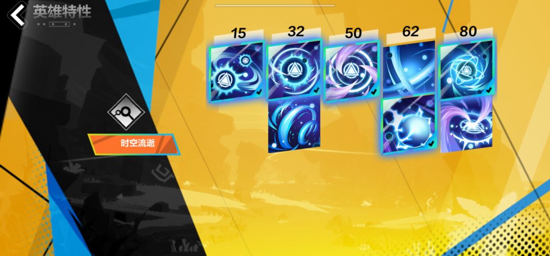 特性选择如上,重点在于80特性选择时空乱流结算伤害,这样能吃到持续时间增长带来的额外伤害收益,配合32特性范围加成转持续增长,建立以技能范围为核心的加成体系。