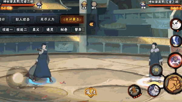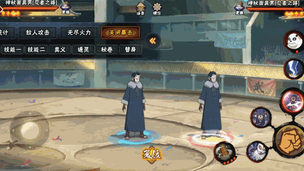 奥义特色神秘面具男「忍者之路」释放奥义时有无敌效果,且对手的动作会暂停,双方CD正常缓冲。另外在距离对手较近时,反向释放二技能再开大,可以实现奥义蹭豆。
