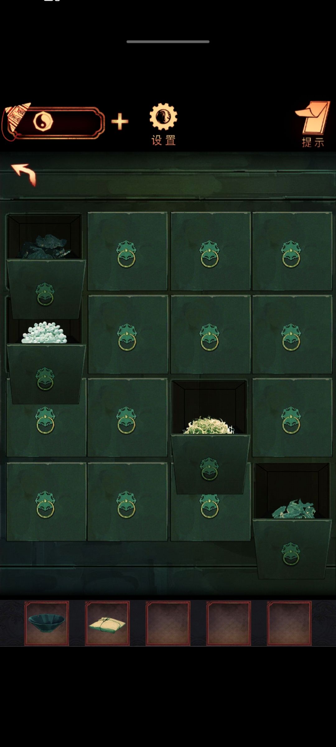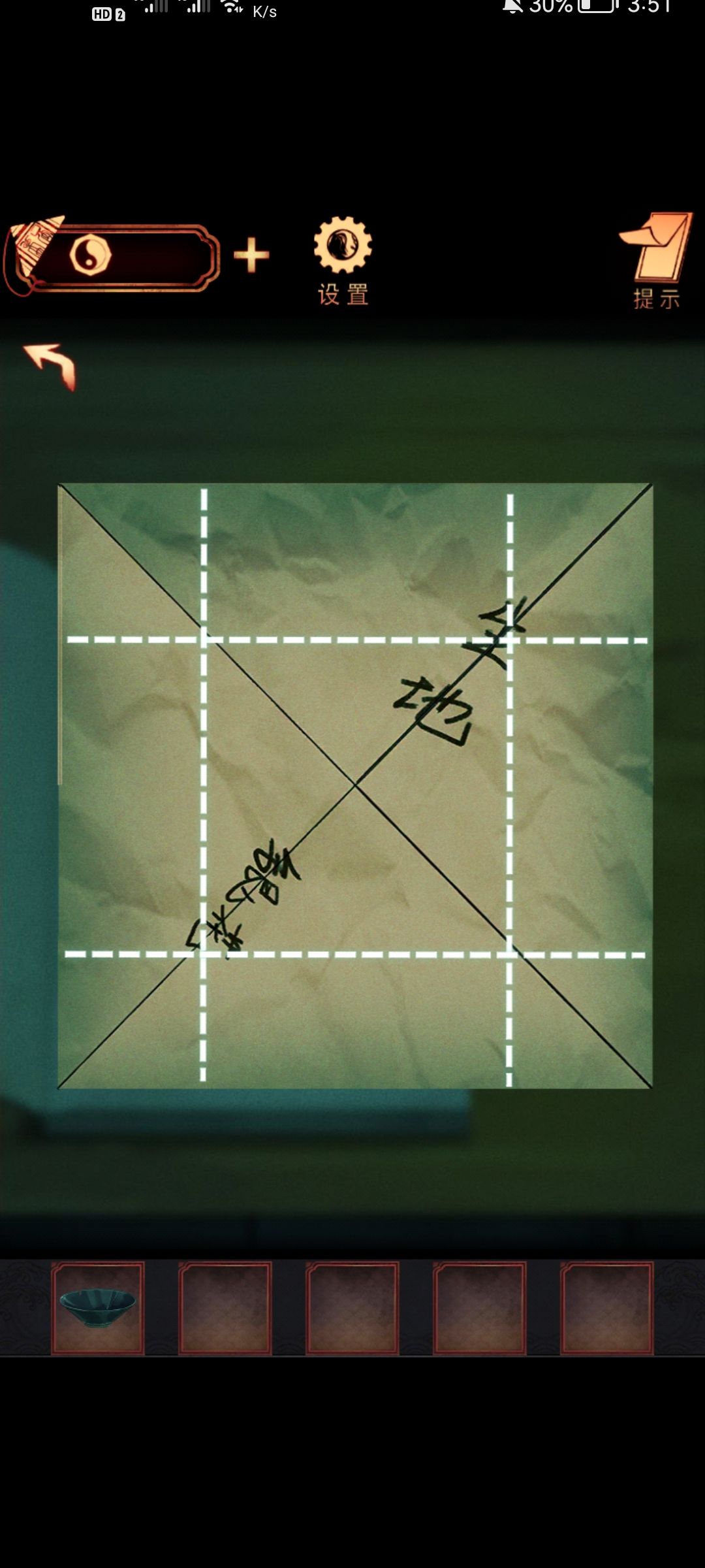 再点击桌面上右上的折纸,根据给出的折线进行折叠,得到图234,根据折纸上面的药材名,在左边柜子取药(柜子上面的药材名对应下面的柜子),分别是——生地、银花、玄参、贝母