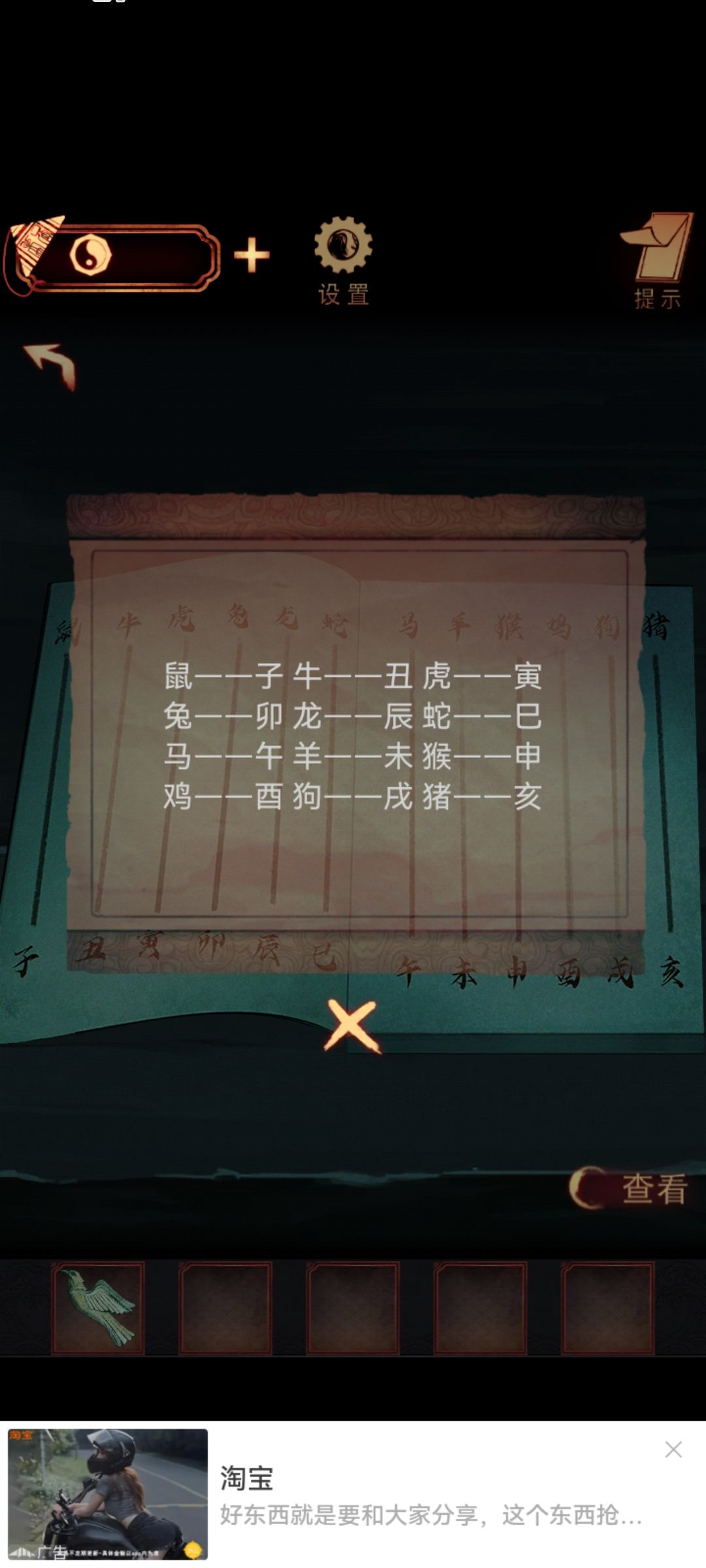 再结合桌子上书的内容,得到大门的密码——辰午申戌