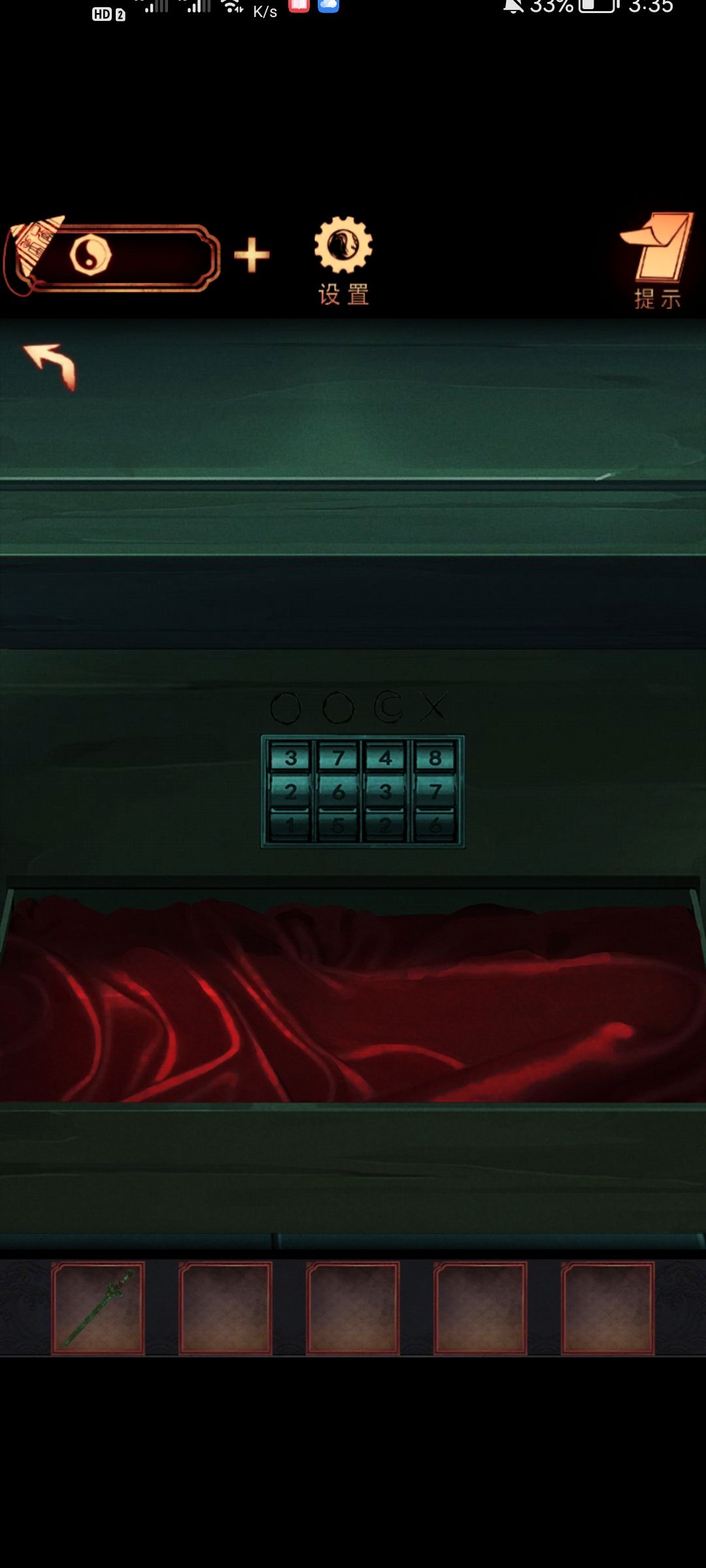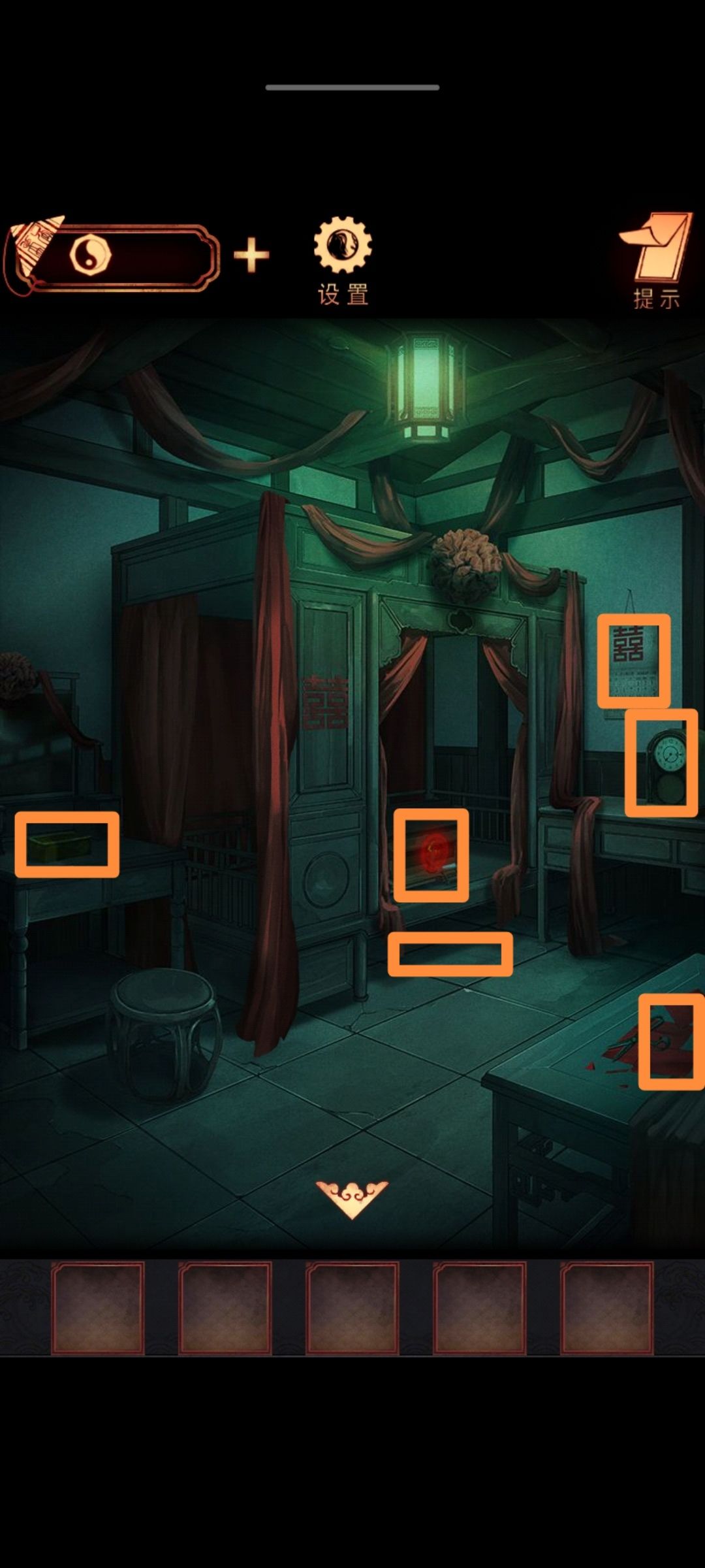 将囍字贴到左边桌子上的铁盒子,看到半张相片(上面7有个X的标志),再跟墙上挂着的日历圈了26以及钟表上月亮对应的3,得到床底下盒子的密码——2637,得到法器